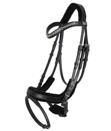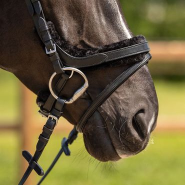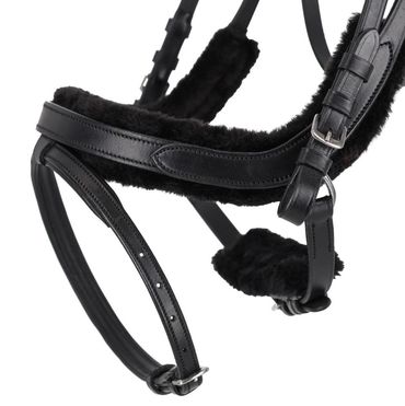 Anatomische Trense mit abnehmbarer Fellunterlage.