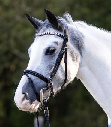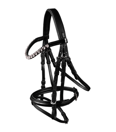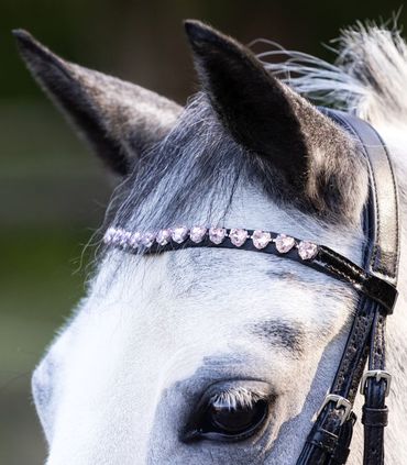 Waldhausen Trensenzaum Happy Hearts schwarz mit Gurtzügeln Lack an Stirn- und Nasenriemen