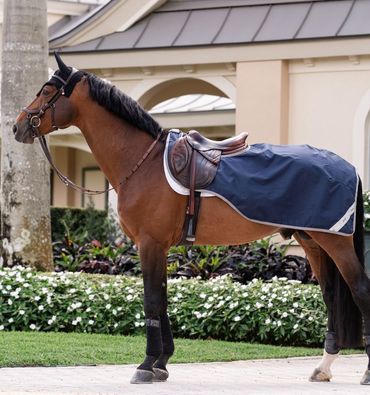Diese stilvolle und hochfunktionelle Ausreitdecke schützt Rücken und Hinterhand deines Pferdes bei jedem Wetter und darf in seiner Ausstattung nicht fehlen.