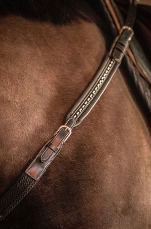 Dieser Halsring ist mit unseren verschiedenen deutschen Martingalen, elastischen Brustblättern und Martingalzusätzen kompatibel.