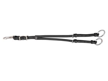 Die offene Martingalgabel von Passier ist nicht nur funktionell, sondern überzeugt auch optisch durch die farblich angepassten Nähte, die ihr ein elegantes Aussehen verleihen. Um die richtige Länge und Position zu finden, sind Löcher eingestanzt. Durch den Karabinerhaken kann die Martingalgabel an jedem beliebigen Vorderzeug angebracht werden.