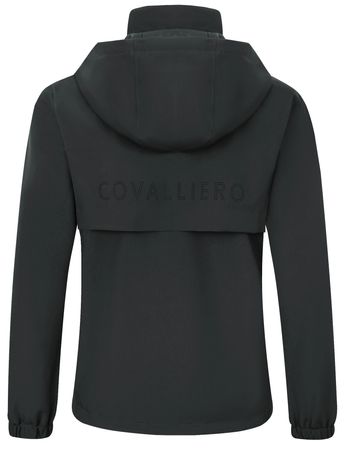 Die wasserdichte Regenjacke von Covalliero bietet zuverlässigen Schutz bei jedem Wetter und ist mit einer verstaubaren Kapuze ausgestattet.|Mit einer beeindruckenden Wassersäule von 10.000 mm, verklebten Nähten und einem praktischen Lotuseffekt gewährleistet sie maximale Trockenheit, während ihre Luftdurchlässigkeit von 3.000 g/m²/24 h für ein angenehmes Tragegefühl sorgt.|Eine integrierte Rückenventilation mit stylischer Logoapplikation fördert zusätzlich die Luftzirkulation und steigert den Tragekomfort. Der elastische Bund am Ärmel und seitliche Gummizugkordeln gewährleisten perfekten Schutz vor Wind und Wasser.