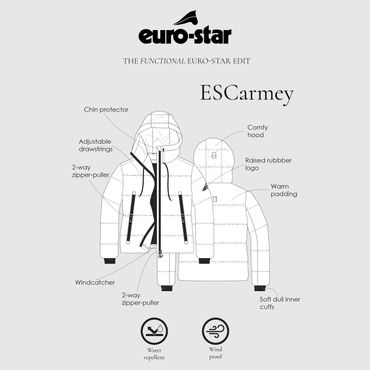 Mit der Jacke ES-Carmey trotzt du stilvoll jedem Wetter und genießt uneingeschränkten Komfort, ganz gleich ob beim täglichen Training, einem Ausritt im Gelände oder auf einem Turnierplatz. Diese hochwertige Winterjacke kombiniert technologische Innovation mit modischem Design, hält dich angenehm warm und bietet gleichzeitig höchste Bewegungsfreiheit. Praktische Features wie ein schützender Kinnschutz, ein bequemer Zwei-Wege-Reißverschluss mit Windfang und weiche Innenbündchen machen das Reiten selbst bei kaltem Wind und niedrigen Temperaturen angenehm. Die verstellbaren Zugbänder sorgen zusätzlich für eine individuelle Passform, während die stilvolle, weich gepolsterte Kapuze und das dezente Gummi-Logo deinen exklusiven Look unterstreichen. Entdecke eine Jacke, die deine Erwartungen in Bezug auf Performance und Eleganz spielend übertrifft.