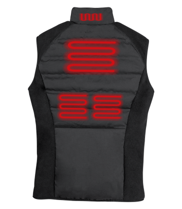 - 6 Heizelemente: 2 im Vorderteil, 1 am hinteren Kragen und 3 im Rückenteil