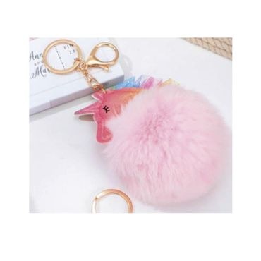 - Süßer Regenbogen-Einhorn-Schlüsselanhänger mit Glitzer und Puschel