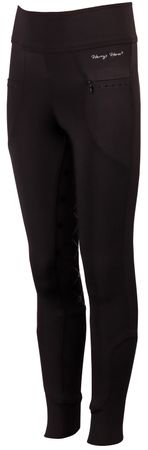 Reitleggings mit zwei Taschen, eine davon mit Reißverschluss, Kristalldetails, Vollbesatz mit Silikondruck für zusätzlichen Halt im Sattel und einem elastischen Einsatz an den Knöcheln.