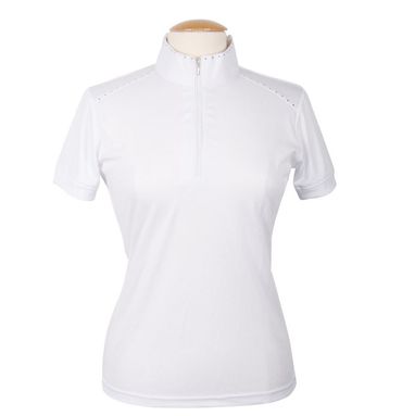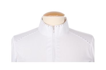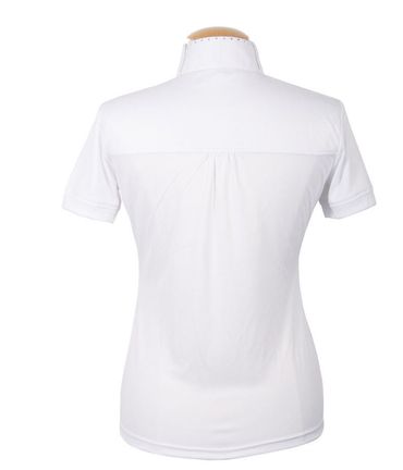 Turniershirt mit kurzen Ärmeln und kurzem Reißverschluss, mit Kristallen und Plastronschlaufen.