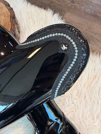 DeNiro Reitstiefel Bellini Dressurstiefel black mit Lack Strass grey, Bogen doppelt Glitter 39 MA/S
