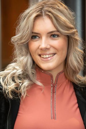 Langärmliges Shirt, Stehkragen mit kurzem Reißverschluss, Kristalle rund um den Kragen und entlang des Reißverschlusses sowie das Equestrian Society-Logo auf dem linken Ärmel.