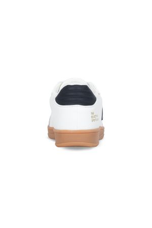 Femininer Sneaker in den Cavallo typischen Farben darkblue und white. Die braune Sohle und die abgesetzte Schuhspitze erzeugen einen modernen Look. Cavallo-Steigbügel-Logo ziert die Außenseiten. Die Zunge und die Außenseiten des Sneakers sind mit goldf