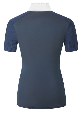 Unser Competition Shirt kombiniert sportliche Performance mit stilvollem Design. Das atmungsaktive, elastische Material sorgt für besten Tragekomfort und maximale Bewegungsfreiheit im Sattel.|Der taillierte Schnitt betont die Figur, während der elegante Stehkragen mit dezenten Glitzerapplikationen einen Hauch von Glamour verleiht.