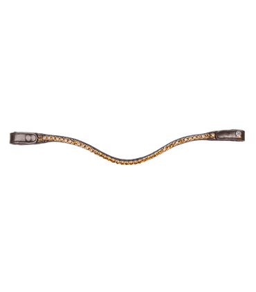 Geschwungenes Stirnband mit großen funkelnden Steinen. Dank praktischem Druckknopf und Klettverschluss lässt sich das Stirnband einfach am Trensenzaum befestigen und ebenso schnell wechseln.